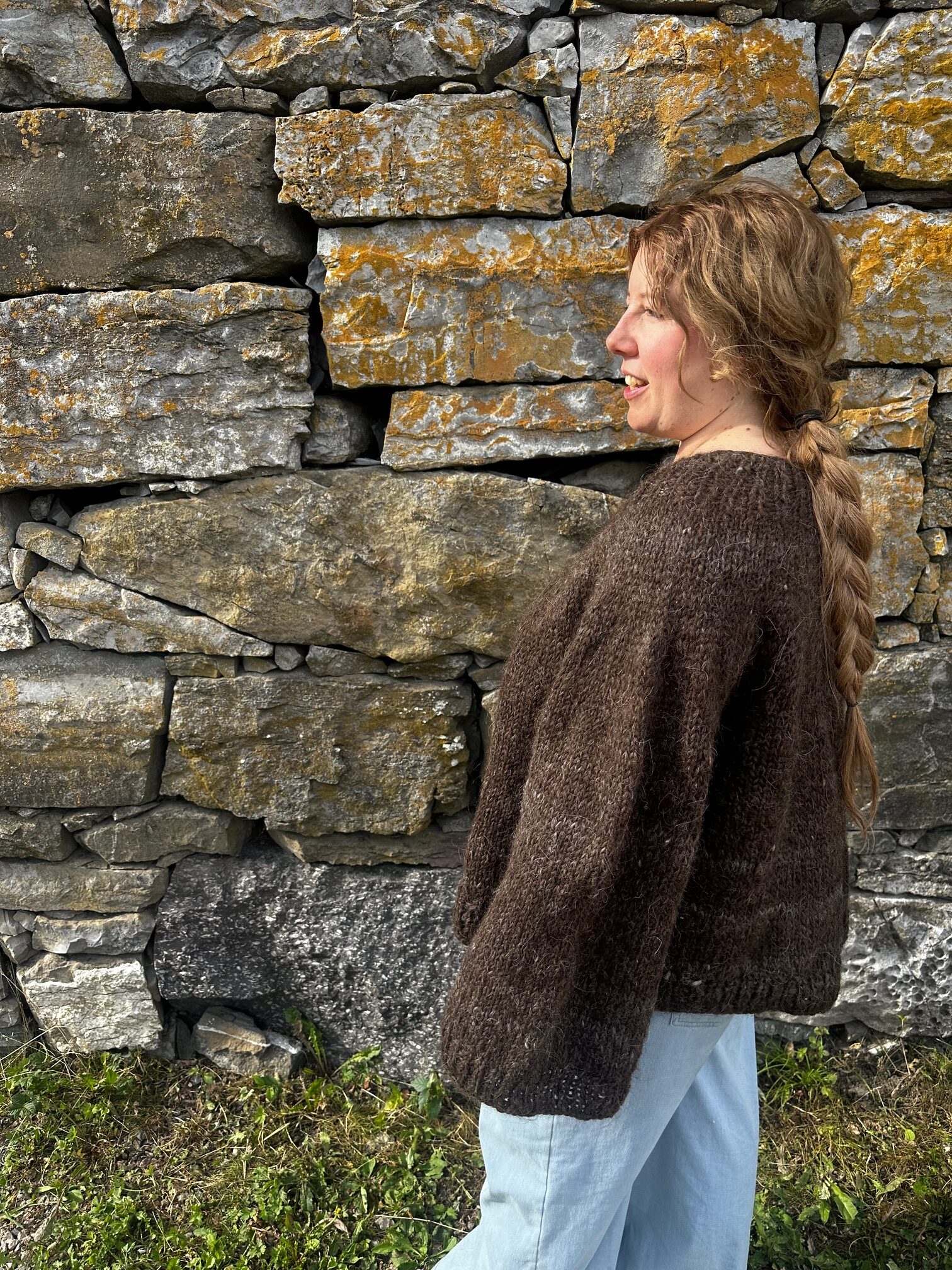 Genseren er stor, kort og med vide ermer. Varm og myk, i naturfarger.